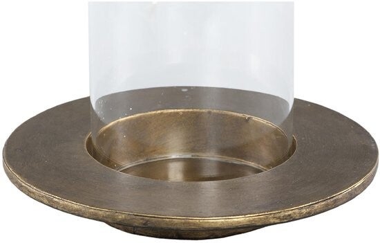 Breng sfeer in huis met dit stijlvolle windlicht met goudkleurige metalen rand en glazen cilinder. Perfect voor op tafel, dressoir of als blikvanger in je interieur