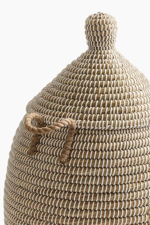 Deze prachtige mand is een echte eyecatcher in elk interieur. Dankzij het gebruik van duurzaam zeegras in combinatie met een sterk jute koord, krijgt de mand niet alleen een natuurlijke en elegante uitstraling, maar is hij ook stevig en vormvast.