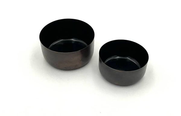 De set bestaat uit twee schaaltjes in verschillende formaten met een warme, donkerbruine metallic finish – perfect voor een modern, industrieel of minimalistisch interieur.