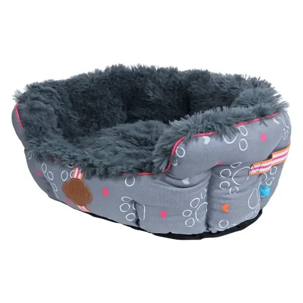 Comfort en stijl komen samen in deze Lief! dierenmand met opstaande rand. De mand heeft een moderne en vrolijke print in grijs met roze accenten, waardoor hij in elk interieur past. De binnenkant is bekleed met extra zachte grijze pluche, zodat jouw huisdier heerlijk tot rust kan komen. Gemaakt van een combinatie van polyester en katoen en wasbaar tot 30 graden.