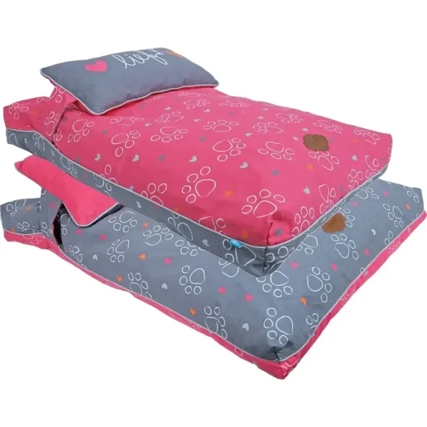 Comfortabel en stijlvol rustmoment voor jouw hond: dit grote Lief! dierenkussen uit de Comfort-serie is uitgevoerd in een moderne grijze kleur met roze accenten. De vrolijke print geeft het kussen een speelse uitstraling. Het kussen is tweezijdig te gebruiken en wordt geleverd met een extra hoofdkussen. Dankzij de afritsbare hoes van polyester en katoen is het geheel wasbaar tot 30 graden. Perfect om jouw huisdier een eigen, comfortabele plek te geven om helemaal tot rust te komen.